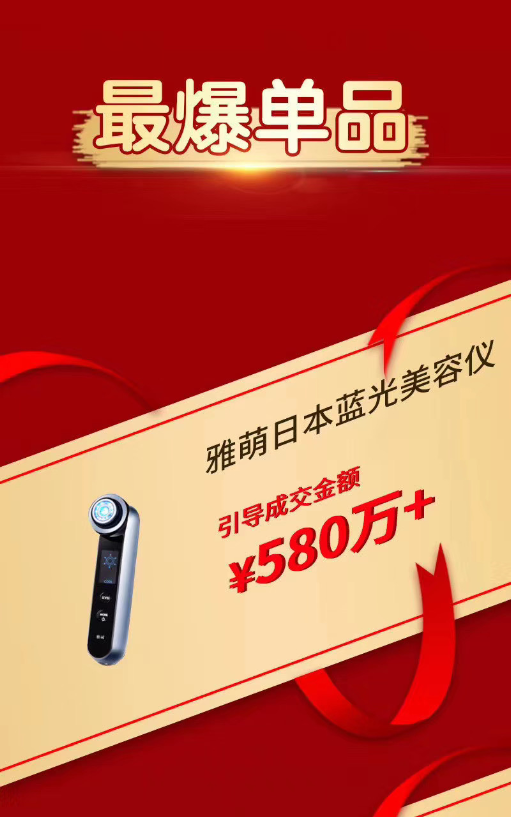 @呗呗兔 在“年货节”为雅萌美容仪带货时,也验证了这一闭环的成功性。她先是在短视频中露出产品、测评功效,筛选出一批购买意愿很强的粉丝;并且凭借粉丝量与粉丝强大的购买力,呗呗兔与品牌方协商拿到了最低价,最终引导成交金额580万+。