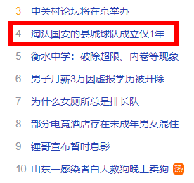 周杰伦今天快手线上演唱会,热度很高,百度搜了一下想着写一写周杰伦的,结果百度热搜一个足球队逆袭的新闻出来了,后天就要世界杯了,很多人都比较关注,我也就点进去了,点进去一看,淘汰北京国安的竟然是我们旁边一个县的足球队,坐大巴只要5块钱,开车20分钟就到了。